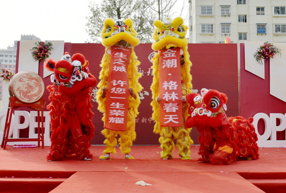 總經(jīng)理彭殿坤鏗鏘有力的致辭之后后,鑼鼓聲啟,象征東方祥瑞的舞獅威風(fēng)登場,四只瑞獅的嫻熟配合和精湛表演,讓現(xiàn)場瞬間熱烈沸騰。隨后,總經(jīng)理彭殿坤邀請其他三位領(lǐng)導(dǎo)共同上臺進(jìn)行“醒獅點睛”,一點左眼——生意興隆,二點右眼——財源廣進(jìn),三點天靈——前程似錦!金潮·格林春天營銷中心正式開門納客!